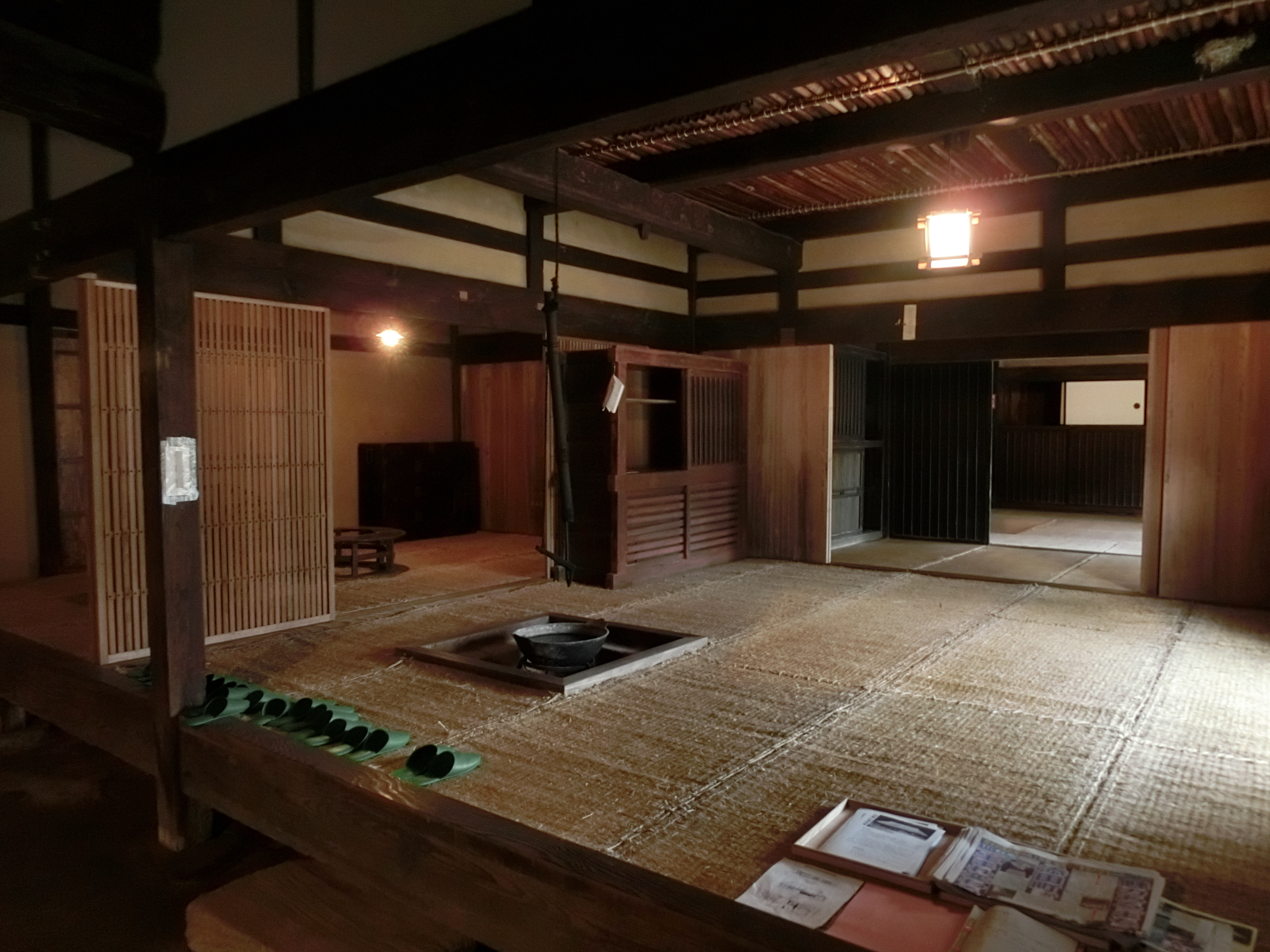 | 構造等 | 桁行21.3m、梁間7.9m、寄棟造、茅葺、南面庇附属、竹葺 |