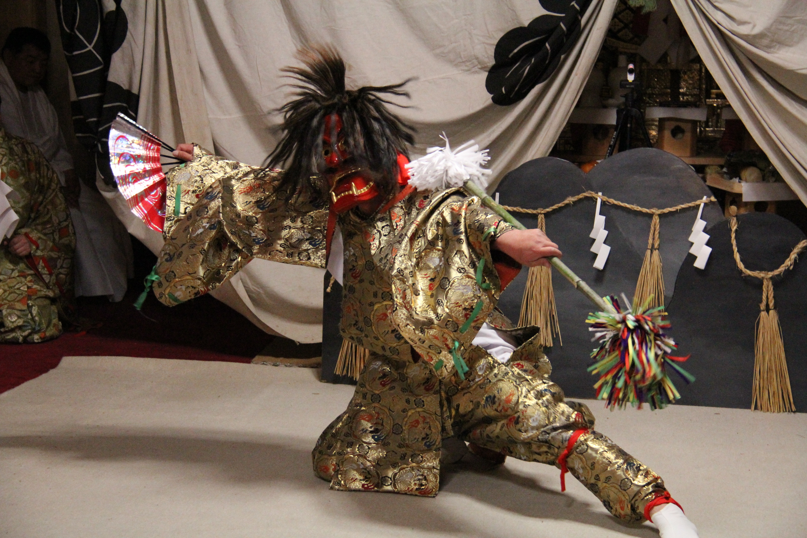 津野神楽は、豊前一帯に分布している岩戸神楽の系譜をひいているとされ、平成29(2017)年4月15日に、国の重要無形民俗文化財である豊前神楽の一つとして追加指定されました。